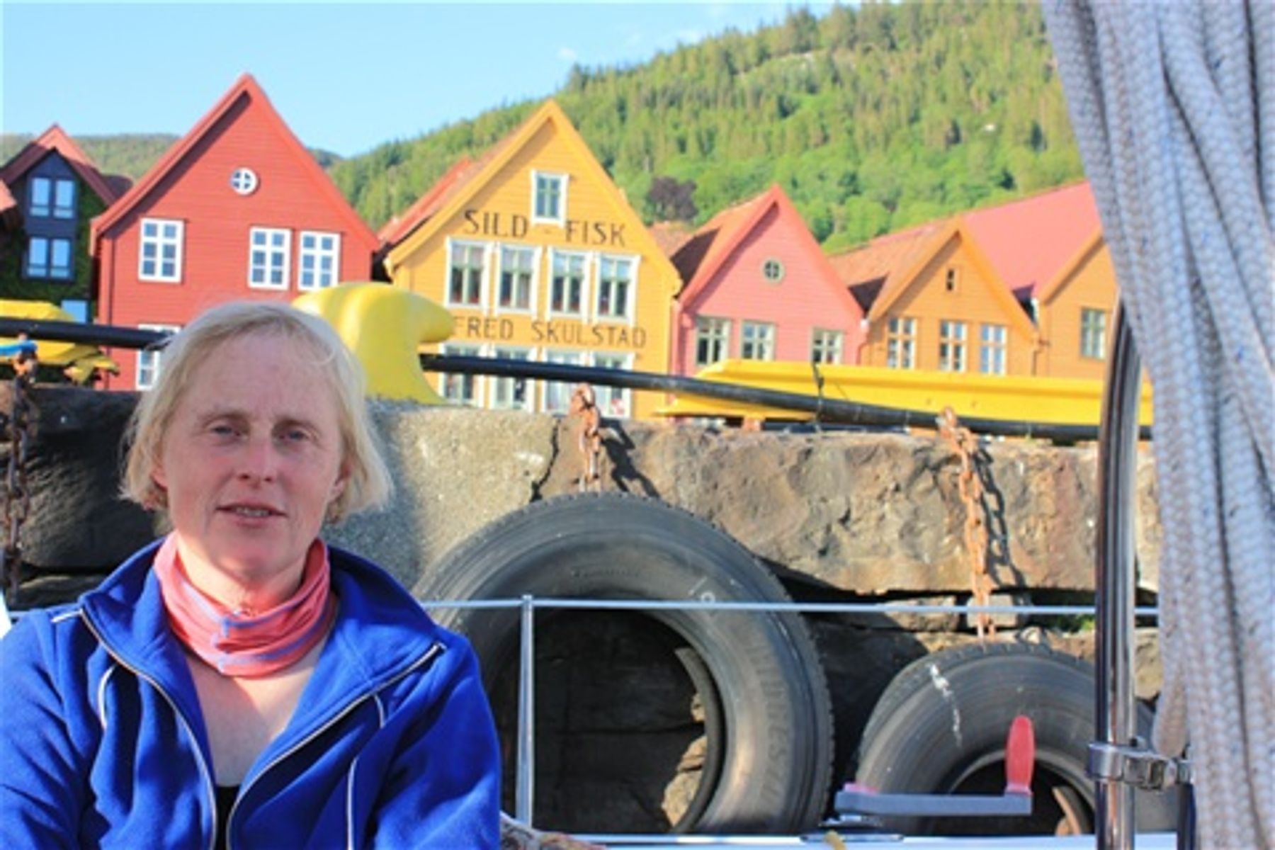 Vi opplevde Bergen annerledes enn ryktet forteller. Vi hadde tropevarme og blå himmel to av de tre dagene vi var der. Det var varmt og hyggelig, men tett på bylivet. Når det i tillegg var friluftskonsert med Elton John bare noe steinkast unna havna ble det mer byliv enn det som godt er for turseilere. Det gode med feststemte konsertgjester er at de fester så lenge at det også garanterer for rolige morgener.