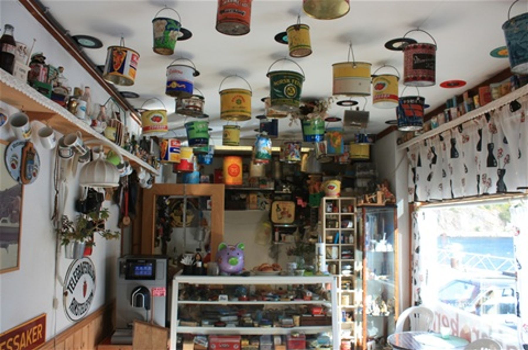 Vi hadde den lokale butikken som nærmeste nabo på kaia. En veldrevet, hyggelig butikk med museumsdel ved inngangen. Så vi led ingen nød mens vi ventet på at "landvinden" skulle løye, og som butikkdama sa: "Den e masat".