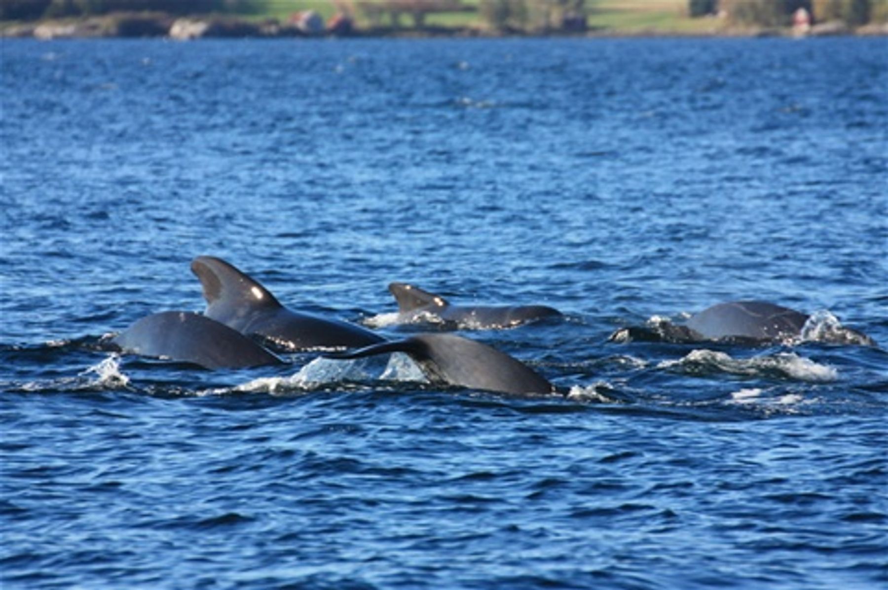 På innsiden av Gossa fikk vi også for første gang på turen se hval. En flokk på 20-30 dyr passerte oss og ga seg til kjenne i overflaten. Et flott syn.
