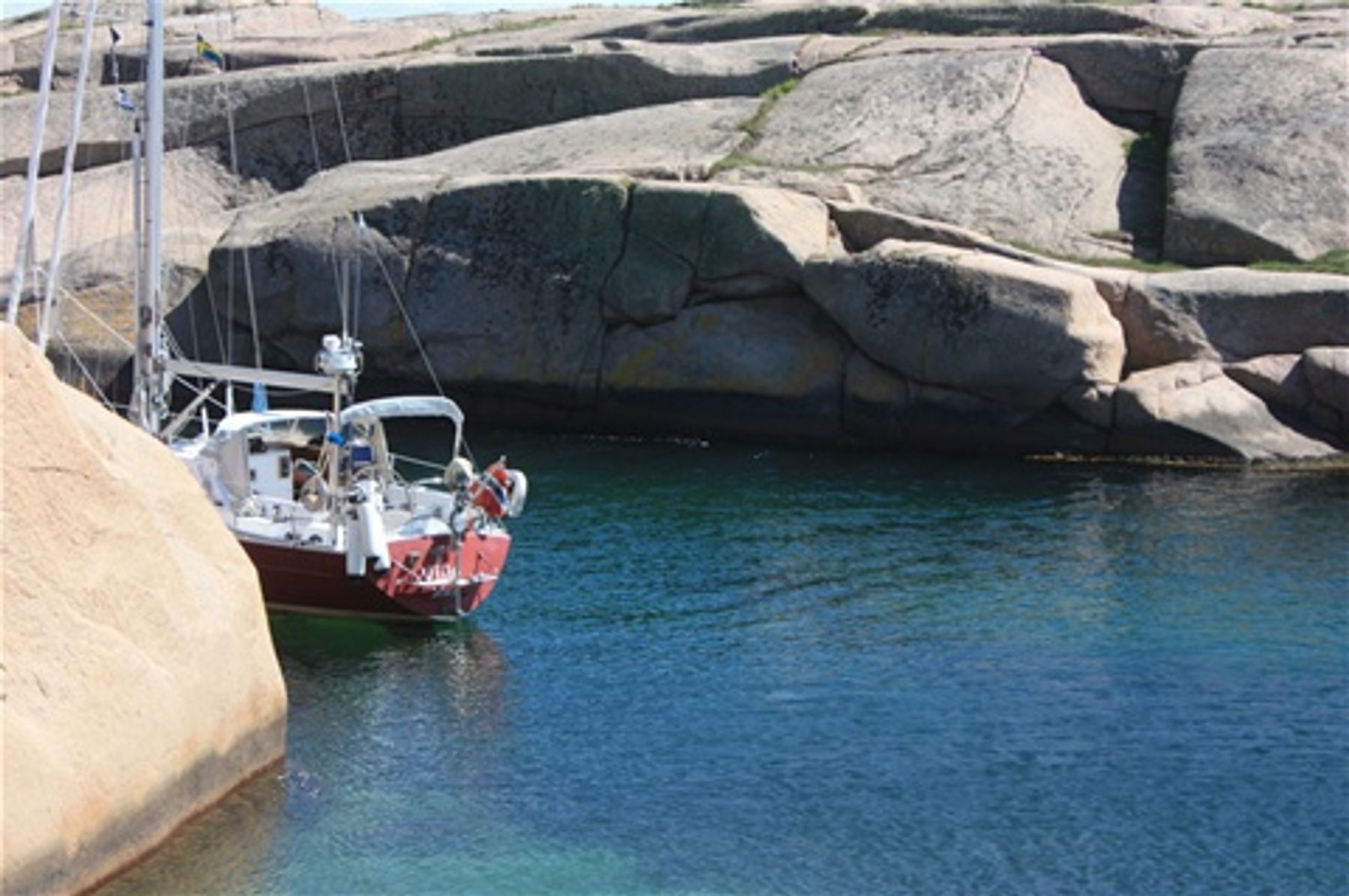 Dette er innledningen til en liten tildragelse som illustrerer denne innsikten. Vi lå fortøyd i ei uthavn som seilvenner av oss inviterte oss ut til for noen år siden. Dette er i Lysekils skjærgård, så vi hadde bare en kort liten etappe fra Gullholmen og inn i en liten lukket lagune med kraftig Bohuslängranitt som beskyttelse alle veier. Det blåser friskt over oss og rundt oss, men vi ligger helt stille og nyter roen.