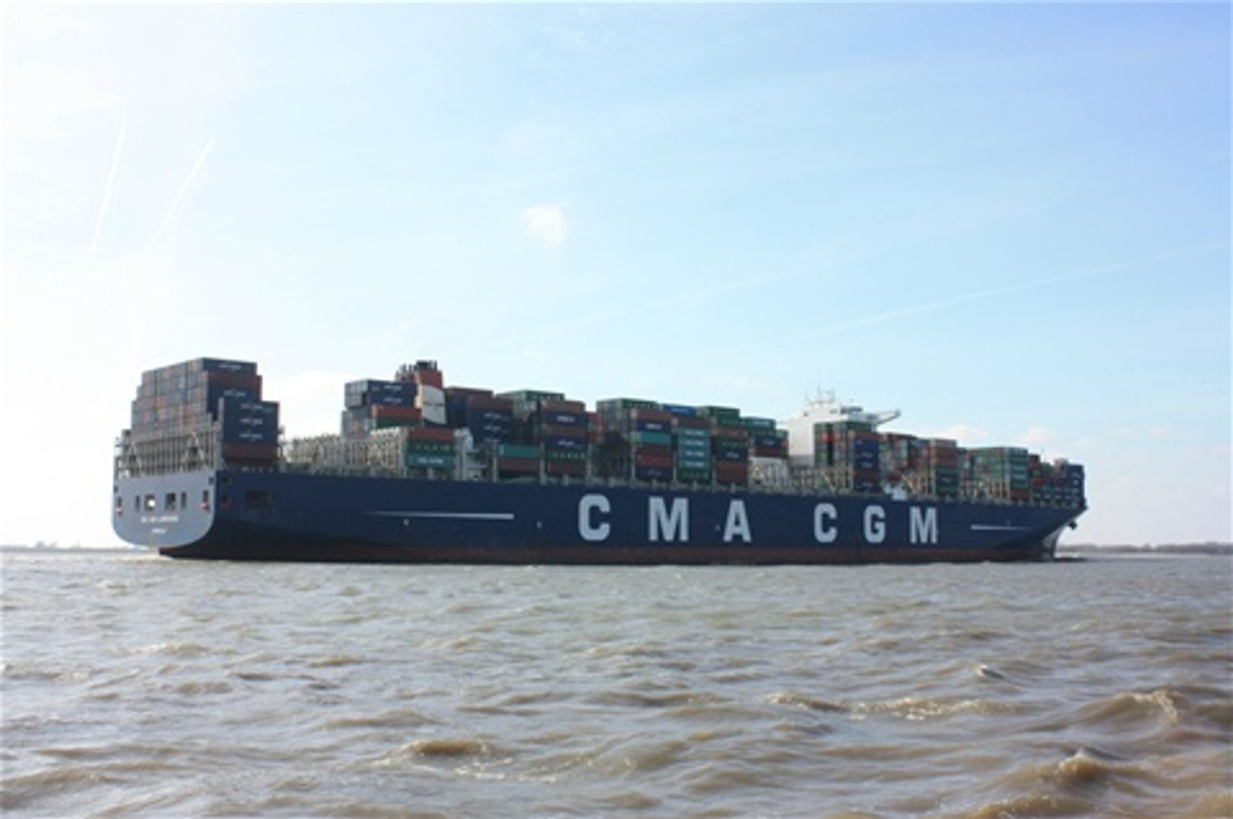 Omsider så vi andre fritidsfartøyer underveis. Men Hamburg er en stor havn, så det var handelsfartøyene som dominerte, som denne giganten av et containerskip.