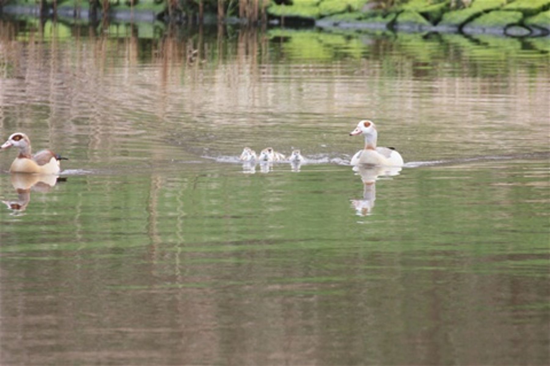 Akkurat de dere ser på bildet vil dere antakelig ikke se hjemme. Så vidt vi har klart å finne ut, er det Egyptisk gås, som har sin utbredelse på det afrikanske kontinentet, og det er bare noen ganske få hekkende par her oppe i Nord-Tyskland, Nederland og Belgia.
