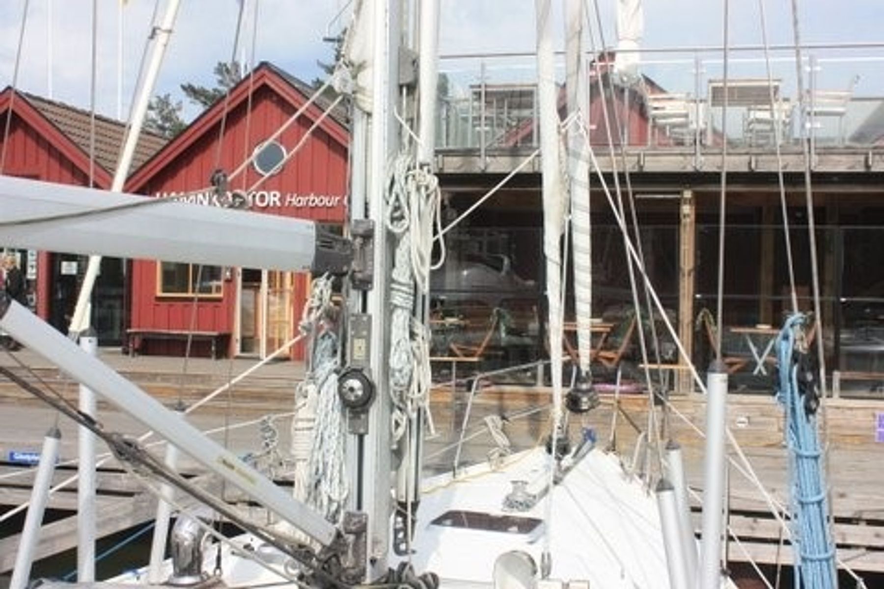 Dette er ei havn vi ikke hadde valgt ut fra havnebeskrivelsene, men nok en gang viste det seg at det er nyttig å snakke med de som vet. Vi fikk plass med baugen nesten inne i hamnkrogen og med livsmedel og hamnkontor som nærmeste nabo. Et hyggelig møte. Vi brukte kulingen til å gjøre litt indretjeneste og annet forefallende, og legge planer for videre ferd.