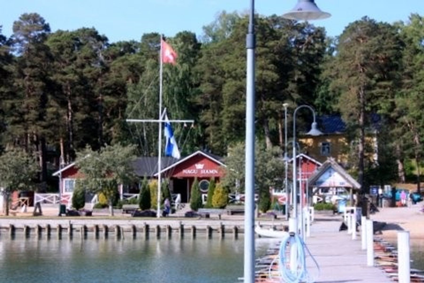 Vi er i Finland og ligger fortøyd i en liten lagune i Turkuskjærgården. Stedet heter Nagu og minner mest om noen av de greske småhavnene vi har vært i. Furuskog helt ned til strandkanten og med servering og hyggelig folkeliv rett innenfor flytebrygga. Dessuten anløp av ferger som ser alt for store ut for havna. Vi mangler bare smaken av grillet blekksprut og Retsina, men det røykes fisk og selges svart rugbrød. Stedet er ikke overraskende et av de populære målene for feiring av midtsommer for de som sokner til denne skjærgården.