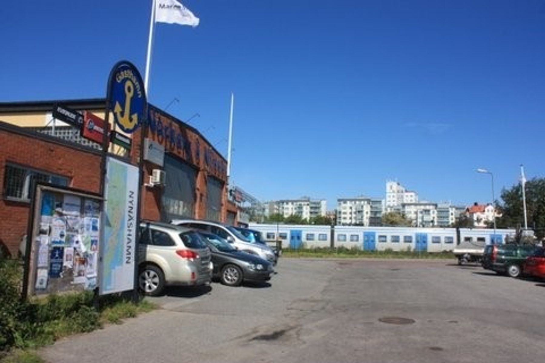 Det som skulle vært en lørdag med tåke i hele havsbandet og derfor ideell for bytur, viste seg fram som en mild og klar morgen. Vi endret planer og brukte dagen til å flytte oss 40 nautiske mil lenger nordøst til Nynäshamn. Her er stasjonen for lokaltoget til Stockholm bokstavelig talt på brygga. Vi tar en bytur på mandag.